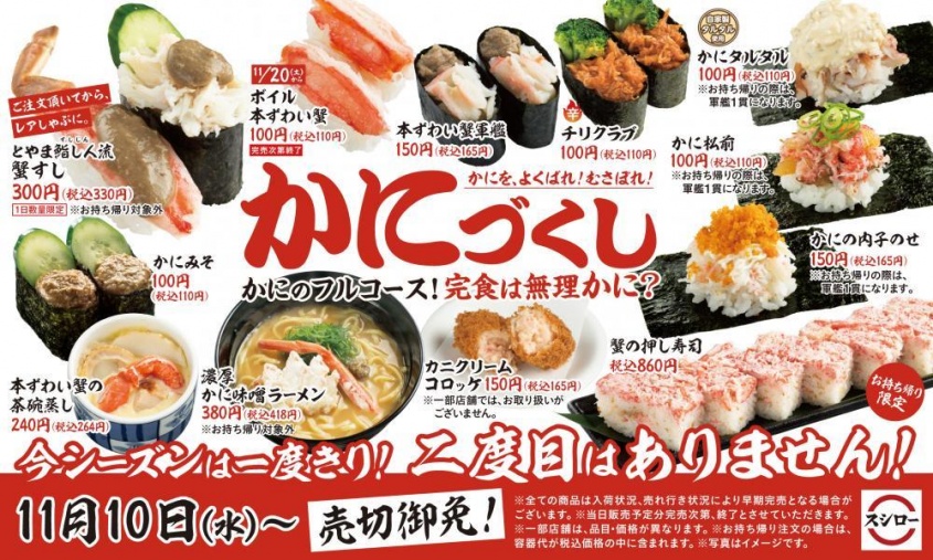 スシローで「かに」尽くし。今シーズンは今回限り、食べるならお早めに!!
