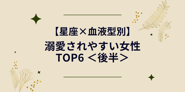 【星座×血液型別】「溺愛されやすい女性ランキング」TOP6<後半>