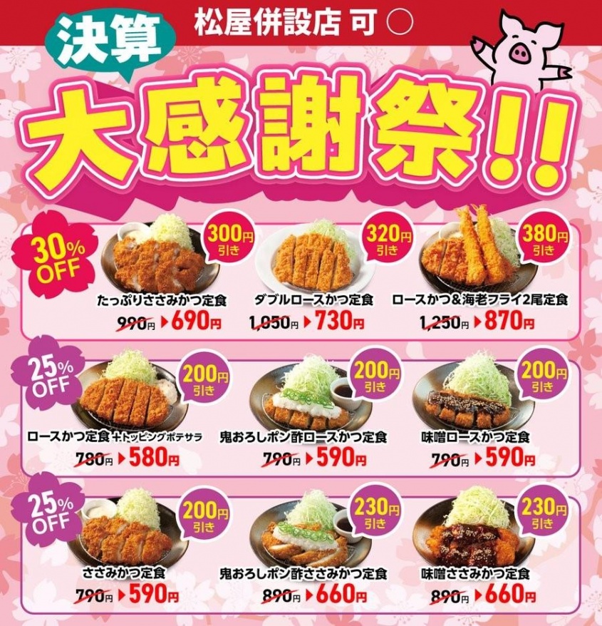 (画像)松のや最新クーポンは最大380円引き!公式Xが投稿した最大30%オフの「決算大感謝祭」が激アツ《3月4日開始》